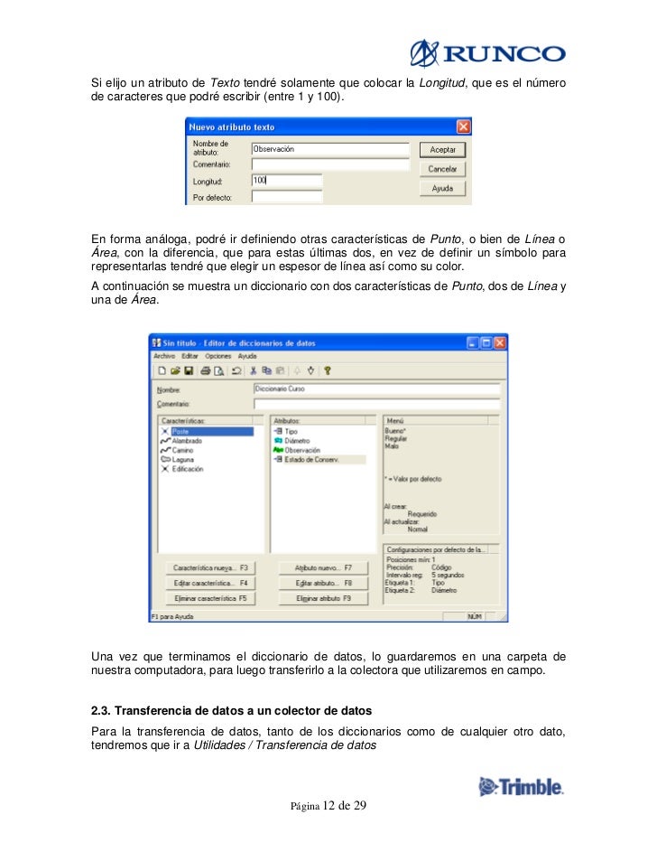 Page 1 GPS Pathfinder Systems ® Receiver Manual.; Page 3 ® GPS Pathfinder Systems Receiver Manual Version 1.00 Part Number 40889-00-ENG Revision B April 2001.; Page 4 Trimble's sole liability and your exclusive remedy number 40889-00-ENG. Under the warranties set forth above shall be, at Trimble’s option, to repair or replace any Product or Software that fails to conform to such. Trimble Geospatial provides solutions that allow you to make your mark using high-quality, productive workflows and information exchange, driving value for a global and diverse customer base of surveyors, engineering, and GIS service companies, governments, utilities, and transportation authorities. Trimble’s innovative technologies include integrated sensors, field applications, real-time communications, and office software for processing, modeling, and data analytics. We’re pioneering the future of data intelligence, converging people, product, and place seamlessly to help you make your mark and leave your legacy. Trimble® GPS Pathfinder® Office software is a powerful and easy-to-use land surveying software package of GNSS post-processing tools, designed to take GNSS data collected in the field and turn it into consistent, reliable, and accurate GIS information. And any use of such marks by Trimble Navigation Limited is under license. All other trademarks are the property of their respective owners. Release Notice This is the February 2011 release (Revision A) of the GeoExplorer 6000 Series User Guide. The GeoExplorer 6000 series handheld’s operating. Guide to Trimble GeoXH GPS with Terrasync The GeoXH provides submeter accuracy after post-processing, and can be configured to accept a Laser Rangefinder with Compass for offset shots. This Guide provides the essentials for using the GeoXH GPS to collect data points and other features using Terrasync. The GeoXH provides 10-30 cm accuracy under.